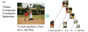 这个归纳对齐的过程叫做无监督的视觉-语言语法归纳,完整的过程如下图(b)所示。